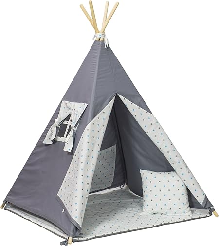 Wigwam Teepee Tent Kids Play Outdoor Indoor Bedroom Mat Pillow 4 Elements Pattern Grey And Turquoise Stars Amazon Co Uk Toys Games