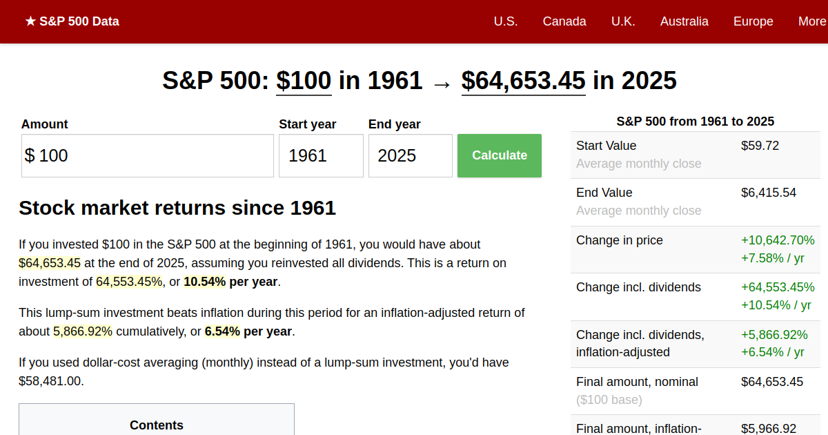 Challenge the Old Buy and Hold. If you invested 100 in the SP 500 at the beginning of 1965 you would have about 2266404 at the end of 2022 assuming you reinvested all dividends. This is a return on investment of.